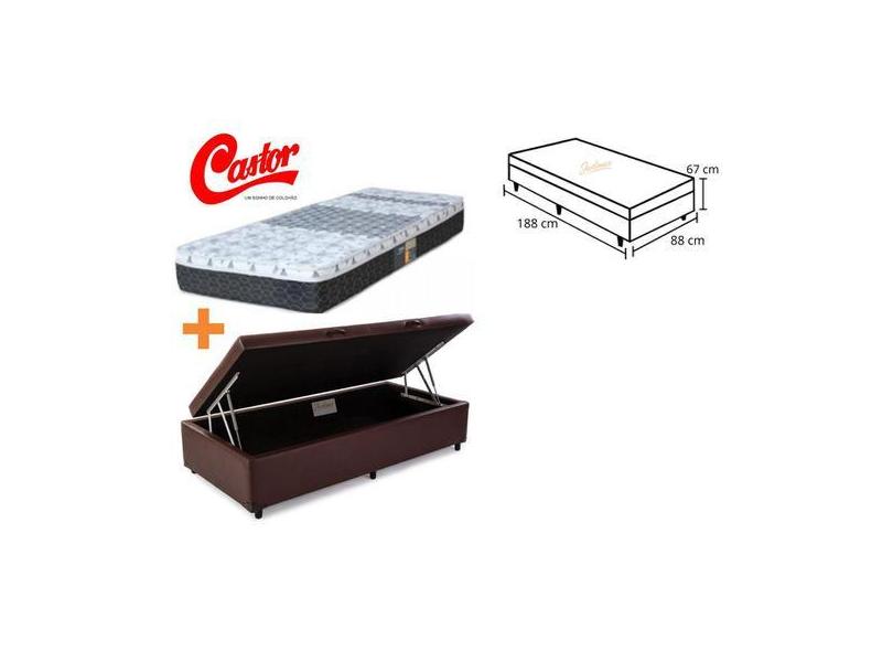 Conjunto Cama Box Baú Solteiro + Colchão Castor Class Molas Antialérgi
