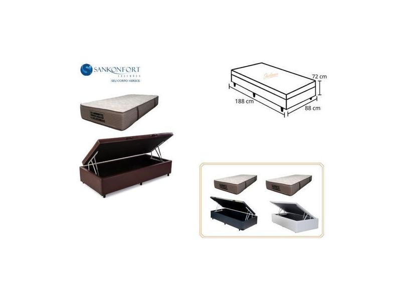 Conjunto Cama Box Baú Solteiro + Colchão Sankonfort Tranquillité 88X18