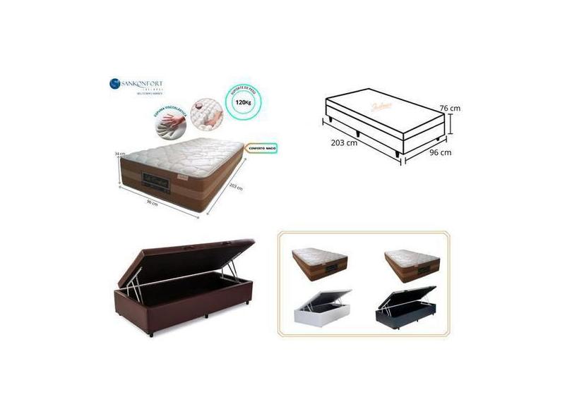 Conjunto Cama Box Baú Solteiro King Americano + Colchão Le Confort Mol