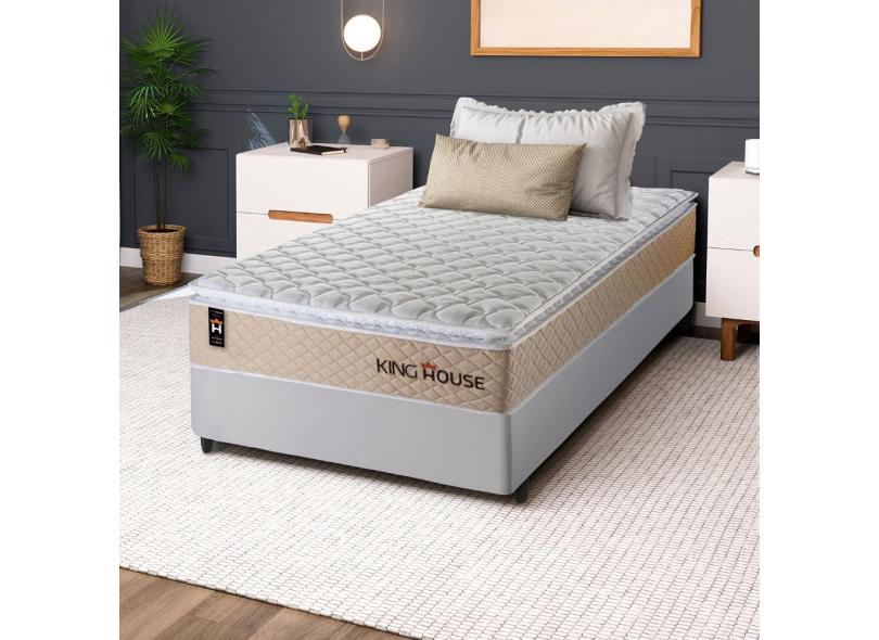 Conjunto Cama Box c/ Molas Ensacadas Alford Bege Solteiro 88x188x66