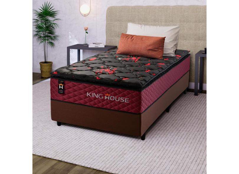 Conjunto Cama Box c/ Molas Ensacadas Toronto Vermelho Solteiro 96x203x66