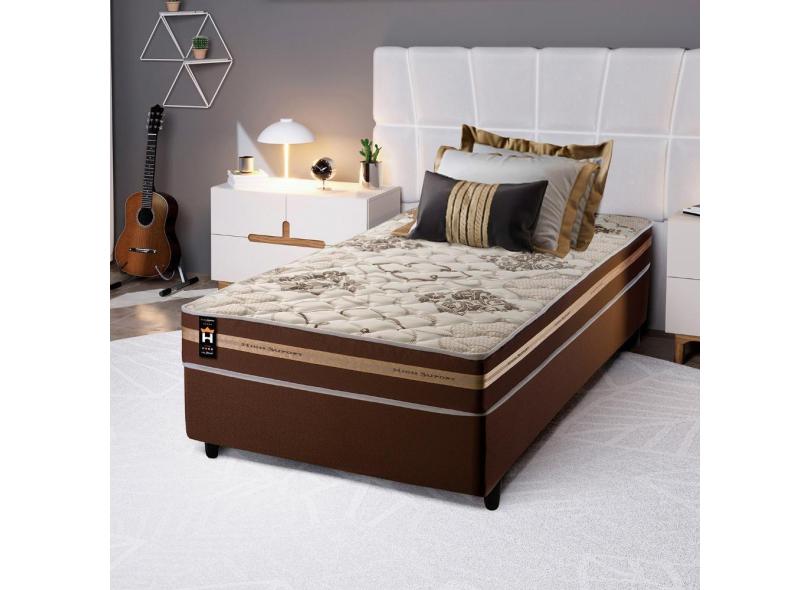 Conjunto Cama Box Espuma Chicago Marrom Solteiro 88x188x57