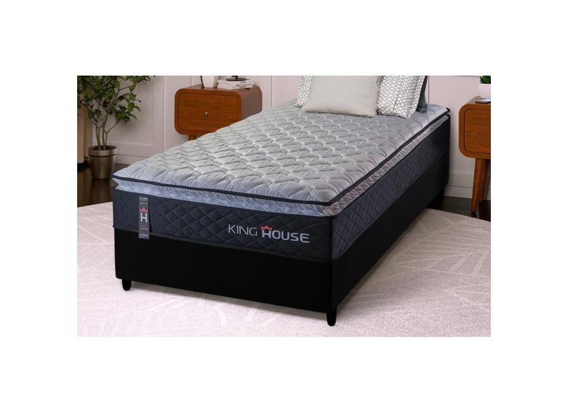 Conjunto Cama Box Solteiro Dakota Preto 88x188x57 Espuma D33