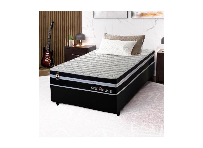 Conjunto Cama Box Solteiro Durham 88x188x60 Preto/Branco c/ Molas Ensa