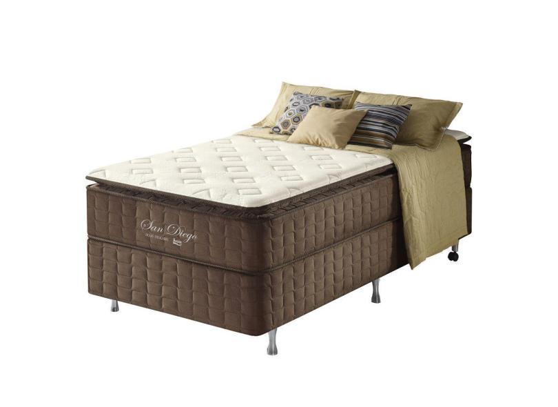 O menor preço encontrado no Brasil para Conjunto Cama Box Solteiro San Diego Pillow Top Mola Marrom atualmente é R$ 1.856,62.
