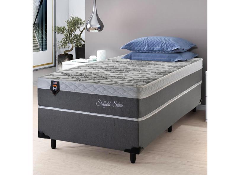 Conjunto Cama Box Solteiro Sheffield 88x188x65 Cinza c/ Molas Ensacadas