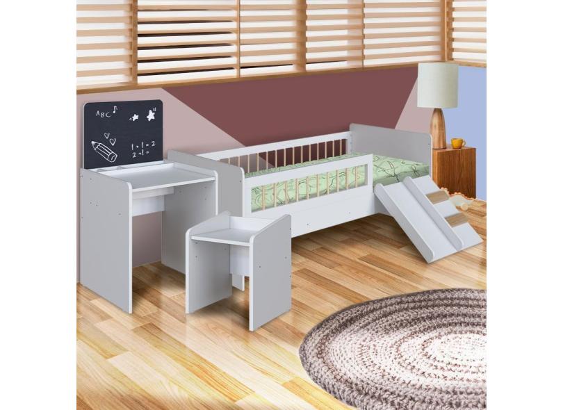 Conjunto Cama Montessoriana E Colchão Com Mesinha Com Lousa E Cadeirinha Infantil Branco Cassian Shop Jm