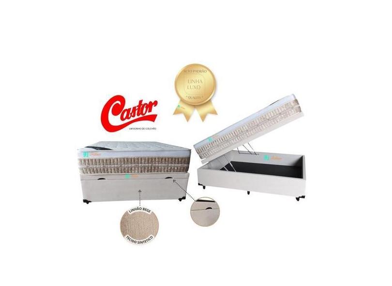 Conjunto Colchão Castor Premium Tecnopedic Casal Viúva + Cama Box Baú