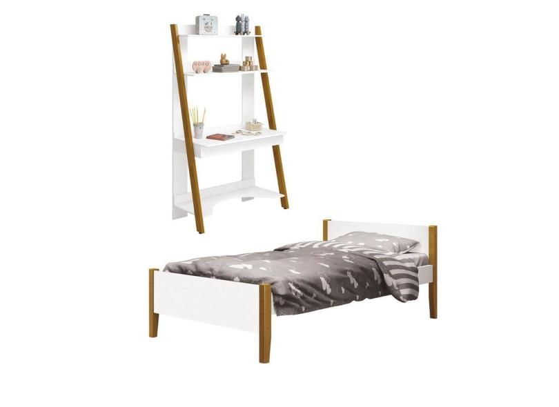 O menor preço encontrado no Brasil para Conjunto Quarto Cama Solteiro e Escrivaninha/ Estante Simba com Pés em Madeira Branco Fosco - Reller atualmente é R$ 1.298,99.