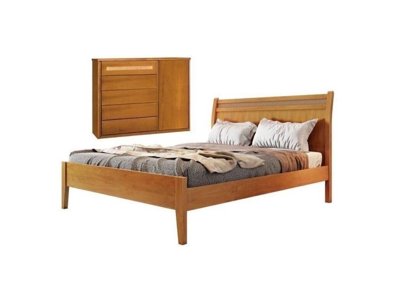 O menor preço encontrado no Brasil para Conjunto Quarto de Casal Cama Madeira Maciça Rattan 140cm e Cômoda Rattan 5 Gavetas com Sapateira Amêndoa Mel atualmente é R$ 3.636,09.