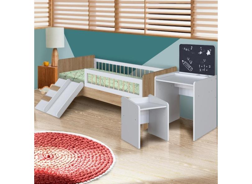 O menor preço encontrado no Brasil para Conjunto Quarto Infantil Melvin Com Cama Montessoriana Colchão Ortobom Aveiro Oak Branco Shop JM atualmente é R$ 2.211,65.
