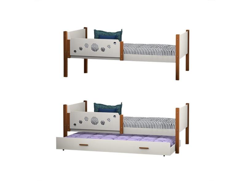 Kit 2 Camas Solteiro Star com 1 Cama Auxiliar - Branco/mel - Divaloto Móveis