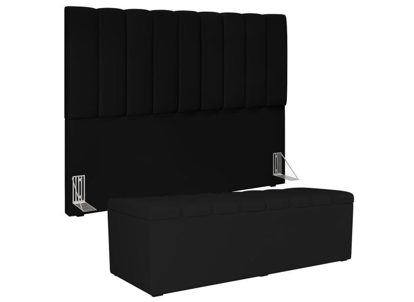 Kit Cabeceira Cama Box Casal King 195cm com Calçadeira Baú Dália W01 Facto Preto - Lyam