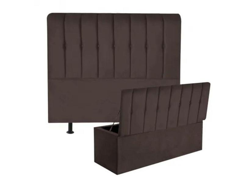 Kit Cabeceira De Cama Box King Com Recamier Akira 195 Cm Suede Marrom - Móveis Mafer