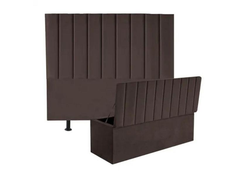 Kit Cabeceira De Cama Box Queen Com Recamier Hana 160 Cm Suede Marrom - Móveis Mafer