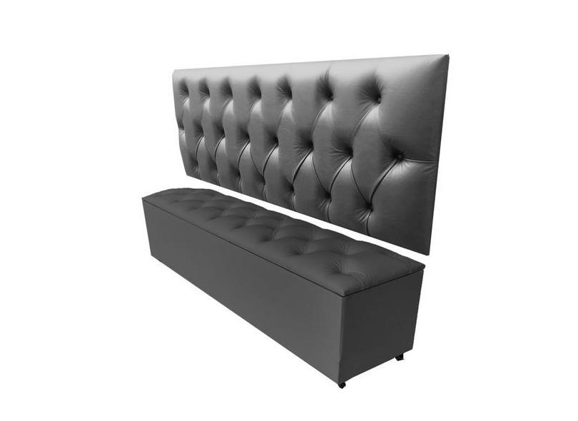 Kit Cabeceira E Recamier Luna Capitonê Baú Casal Cama Box Cinza Rbl