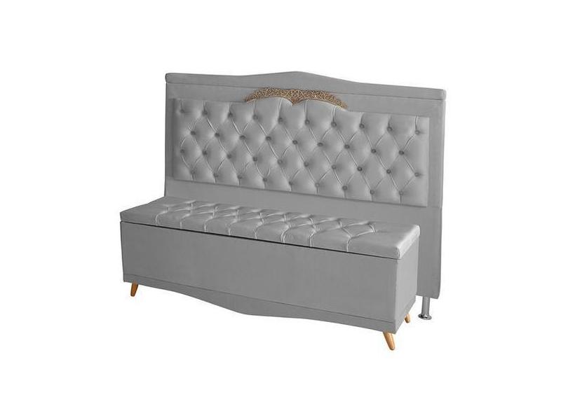 Kit De Cabeceira De Cama Box E Calçadeira Baú Helena King 195 Cm Retro