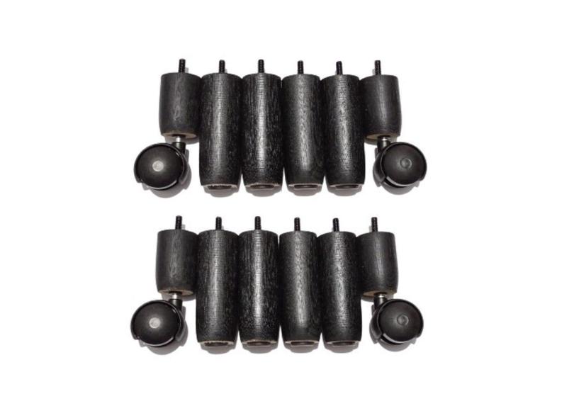 Kit De Pés Para Cama Box Ou Baú Casal Queen King 8x4 (8 Pés Fixos E 4 Rodinhas) Tdc Preto 12cm De Altura