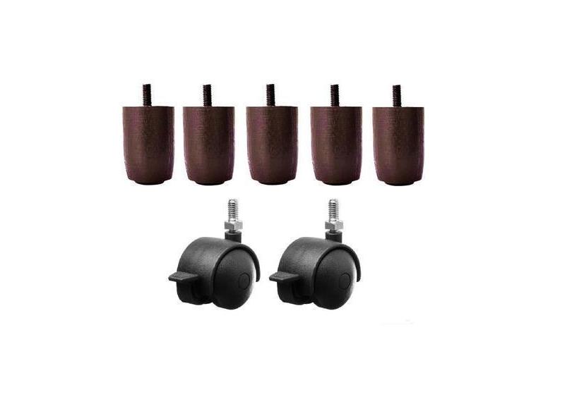 Kit Pés Madeira Cama Box Ou Baú 5 Fixos 2 Rodinhas Freio P63 - Zoe & C