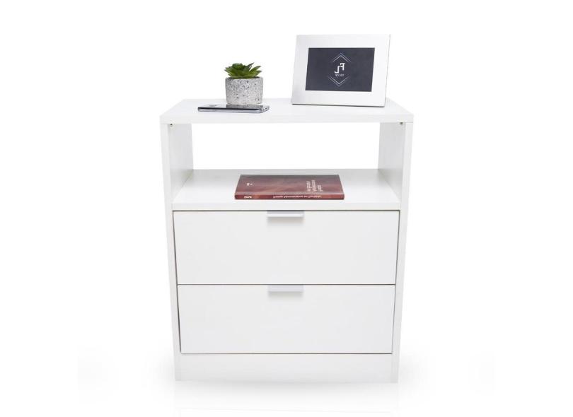 Mesa Cabeceira 50Cm Criado Branco 2 Gavetas Mdf Lateral Cama