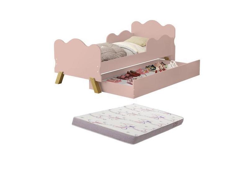 Mini Cama Infantil Angel Com Auxiliar Sapateira Proteção Lateral Com 1