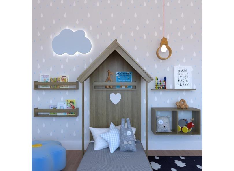 Quarto Infantil Cama Nicho Prateleira e Revisteiros Carvalho