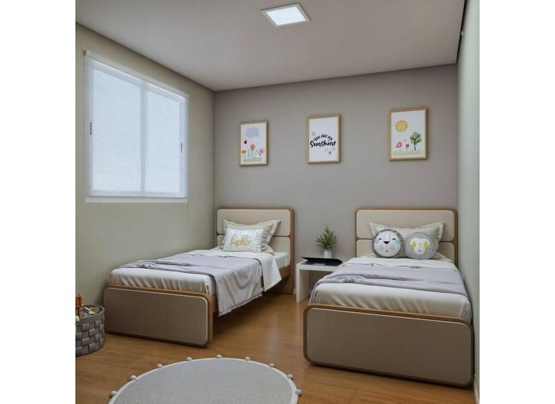 Quarto Infantil com 2 Camas Solteiro Loop Tecido Sintético Amêndoa Clean/Off White