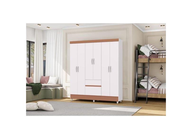 Roupeiro Ideal Plus 6 Portas e 2 Gavetas - Branco / Camarim - Vila Rica
