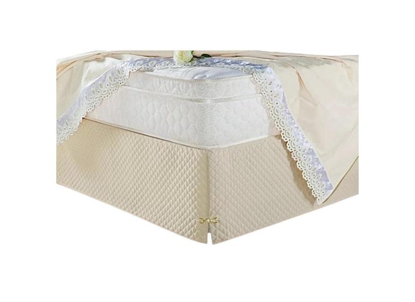 Saia Box Solteiro Creme Matelassado Serve Para Cama Baú