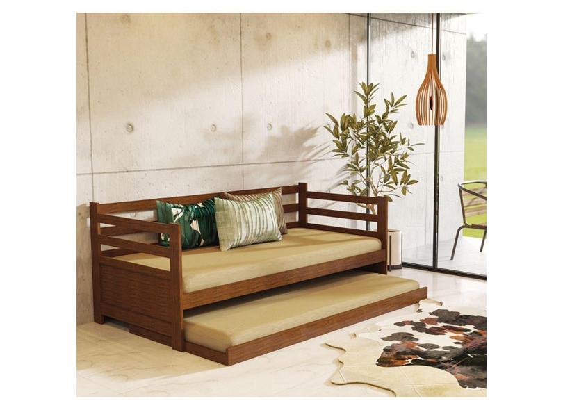 Sofá Cama em Madeira Maciça Enjoy Rústico Vintage Imbuia - Atraente Móveis