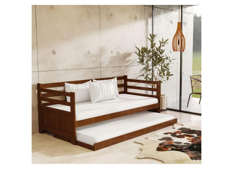 Sofá Cama Vintage Solteiro Enjoy Madeira Maciça Rústica Castanho