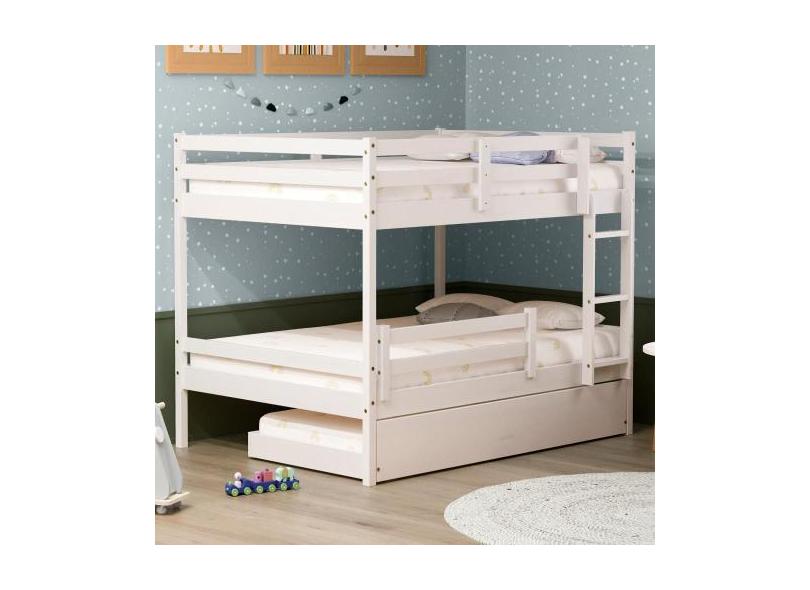 Treliche Casal Casal Eco com Grade de Proteção Madeira Maciça Branco M