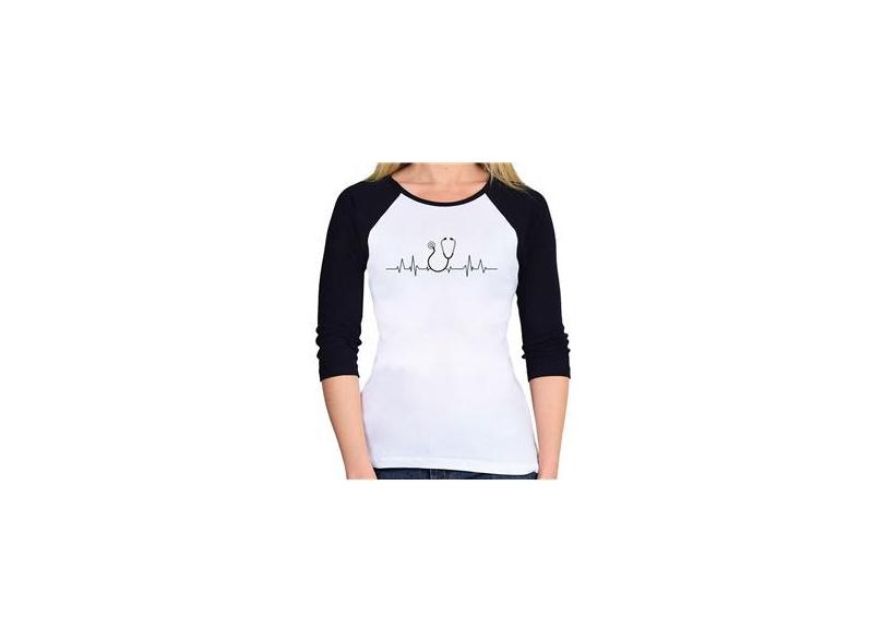 Baby Look Raglan Batimentos Cardíacos Estetoscópio Medicina Manga 3/4