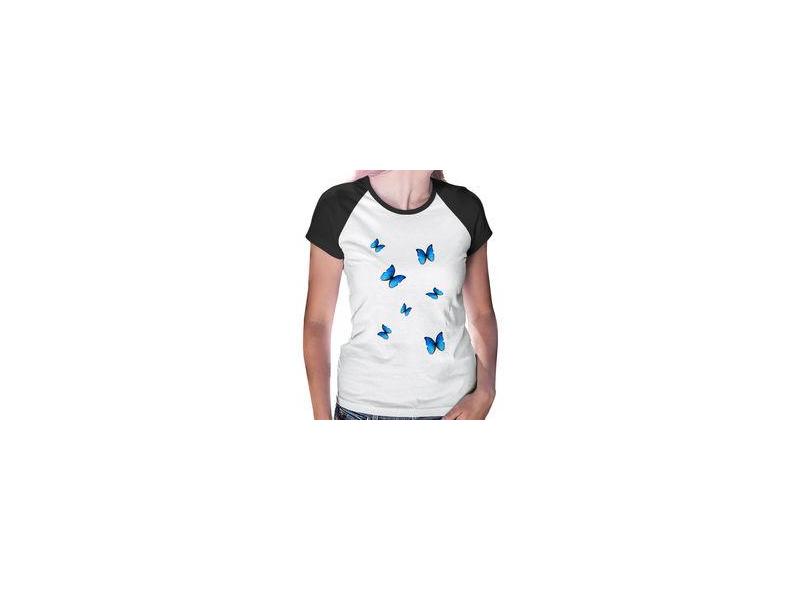 O menor preço encontrado no Brasil para Baby Look Raglan Borboletas Azuis - Foca Na Moda atualmente é R$ 52,81.