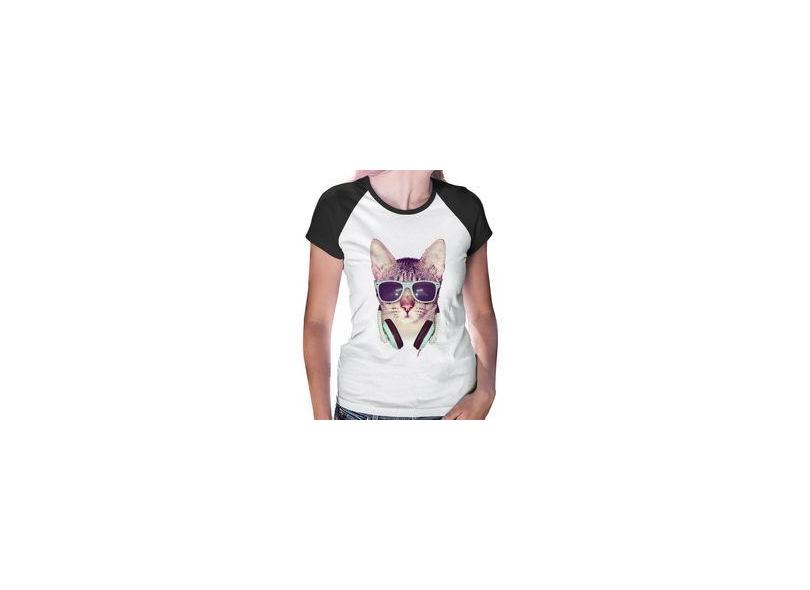 Baby Look Raglan Gato Headphone - Foca Na Moda