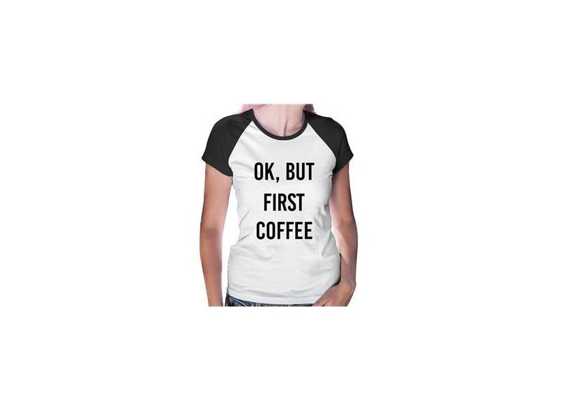 Baby Look Raglan OK, but first coffee - Foca na Moda