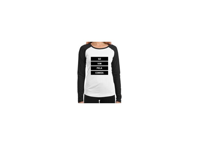Baby Look Raglan Só Vim Pela Comida Manga Longa - Foca Na Moda