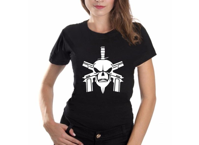 Camiseta Feminina Militar Faca Na Caveira Bope Policia Logo