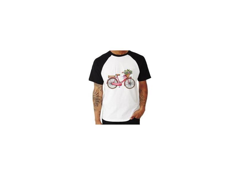Camiseta Raglan Bicicleta Vintage Romântica - Foca Na Moda