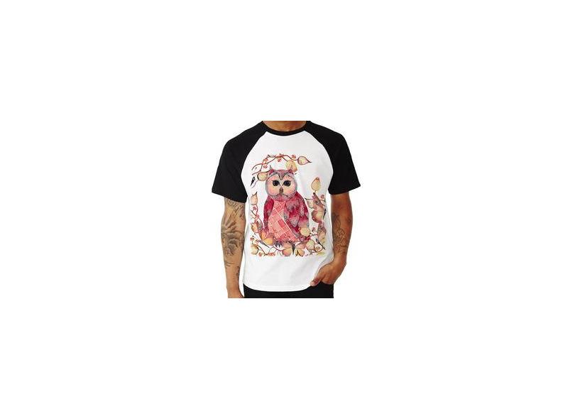 Camiseta Raglan Coruja E Folhas - Foca Na Moda