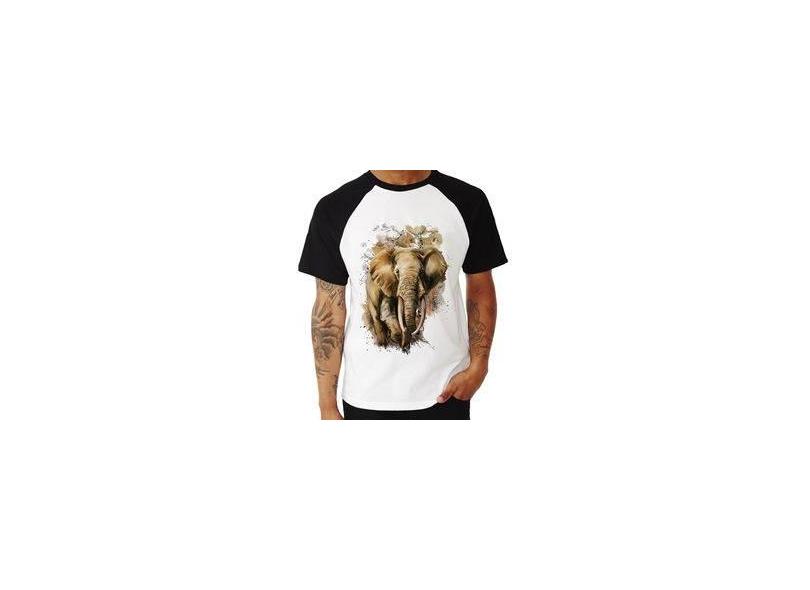 Camiseta Raglan Elefante Watercolor - Foca Na Moda