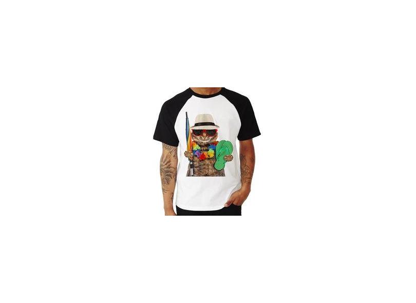 Camiseta Raglan Gato Nas Férias - Foca Na Moda