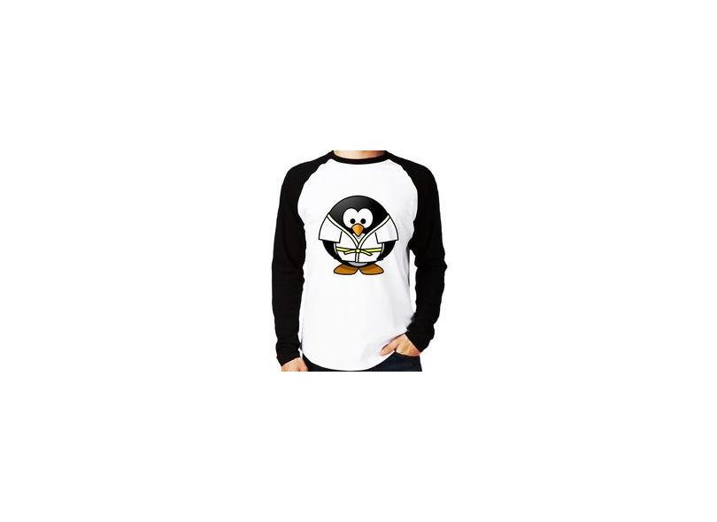 Camiseta Raglan Pinguim Judô Manga Longa - Foca Na Moda
