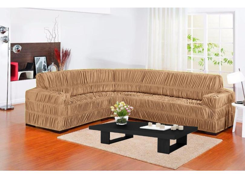 Capa de Sofá de Canto até 6 Lugares Elasticada - Avelã