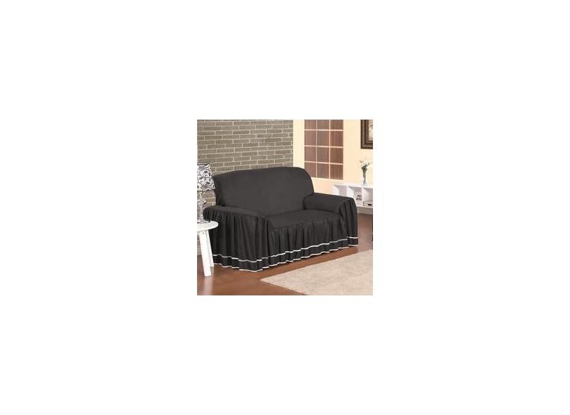 Capa Protetora De Sofá Microfibra Com Babado 2 Lugares Dalia - Preto