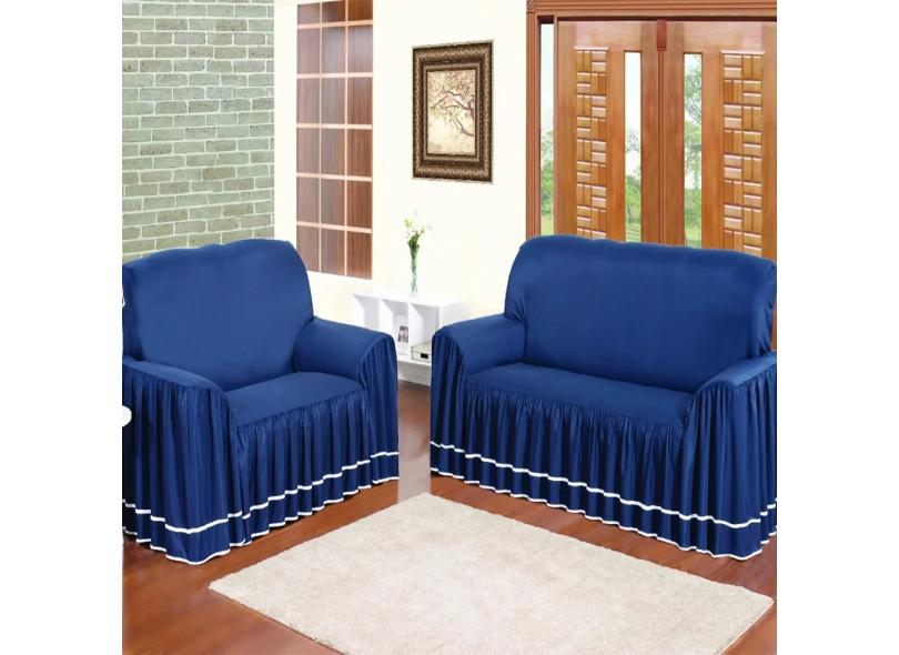 Capa Protetora De Sofá Microfibra Com Babado 3 E 2 Lugares Dalia - Azul