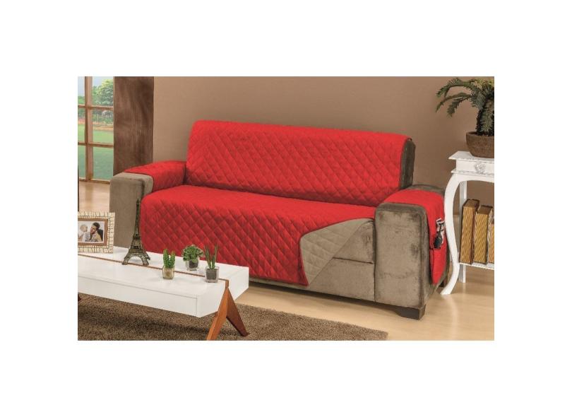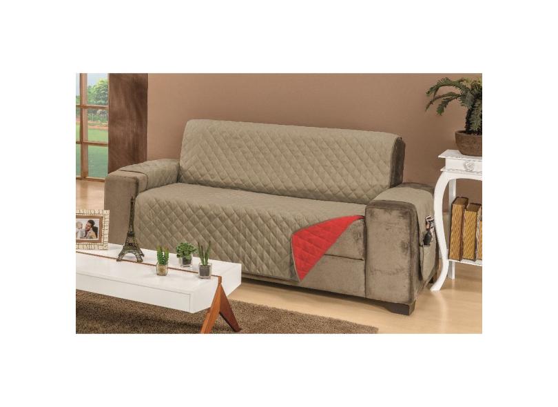 Capa Protetora para Sofá 4 Lugares King Dupla Face Manu - Vermelho e Cáqui