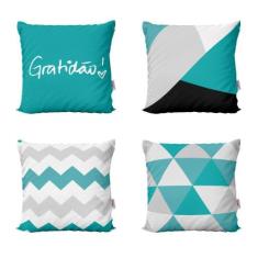 Capas De Almofadas Azul Turquesa E Cinza Gratidão Novadecora