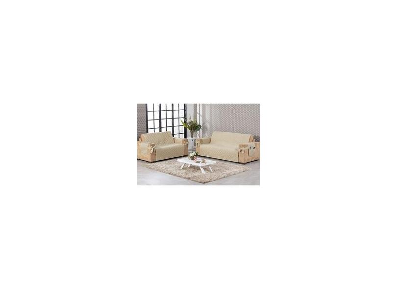 Kit Capa Protetor De Sofá 2 e 3 Lugares Para Sala King Com Laço e Porta Objetos Matelado Caqui