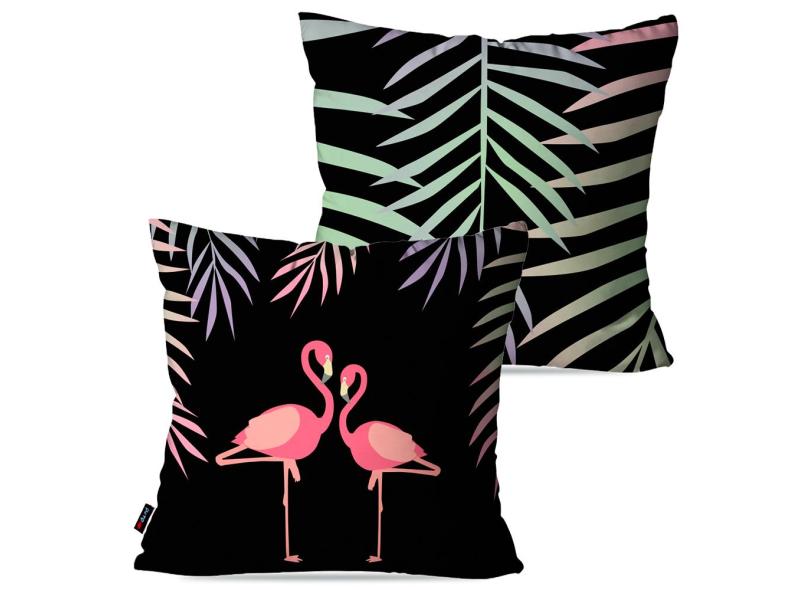 Kit com 2 Capas para Almofadas Decorativas Preto Flamingos